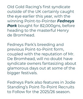Old Gold Racing's 2025 National Hunt preview of their stable of horses.